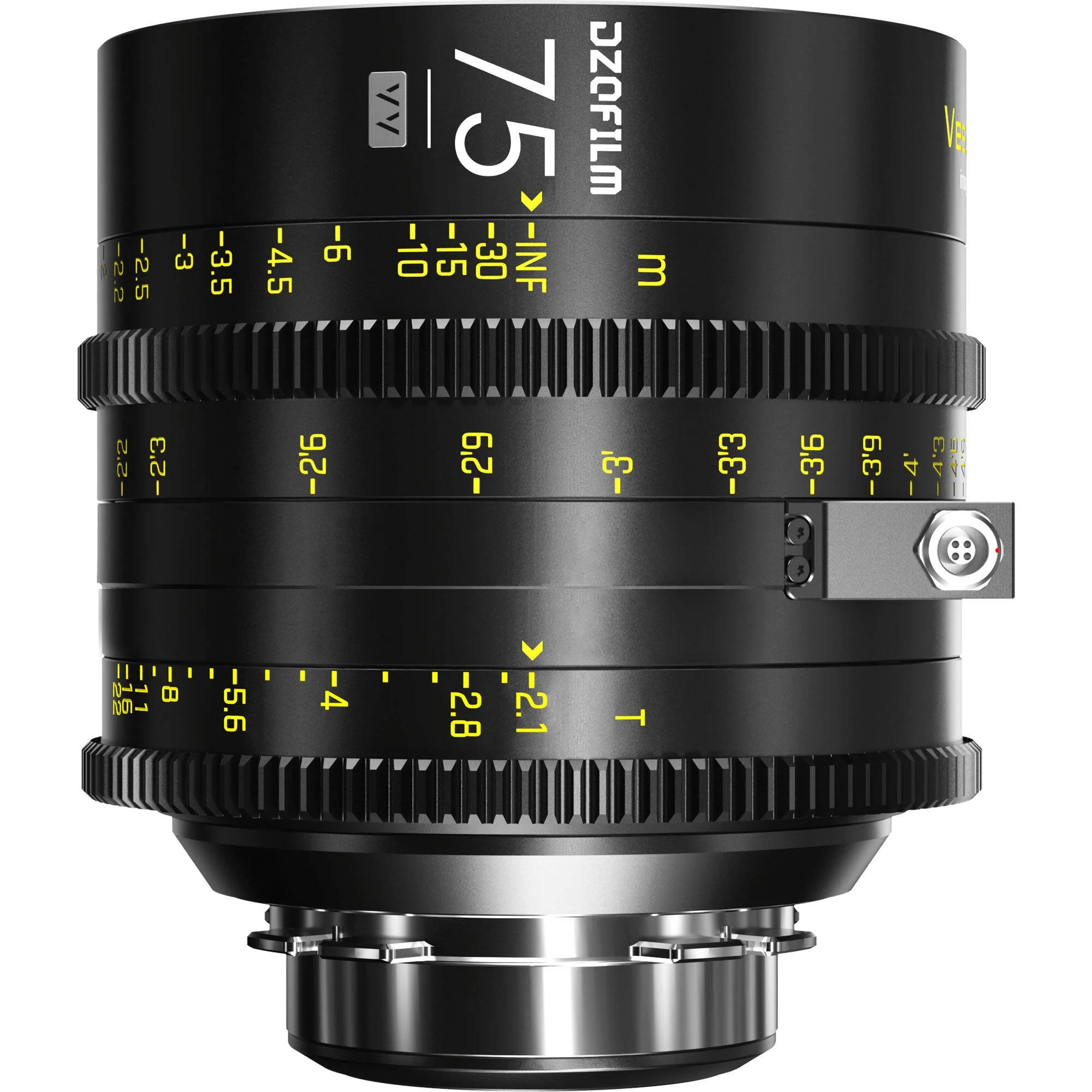 Relatively small and lightweight and with an added data interface, the DZOFilm VESPID Cyber Full Frame 75mm T2.1 Prime Lens is part of the VESPID series of lenses and well suited for independent and high-end full frame cinematography. The Cyber part of its data connection passes aperture and focus data to assist with VFX and post-production workflows. The lens has a 95mm front diameter, allowing it to work with virtually any cine-style matte box, and it matches the other VESPID Cyber lenses. The small size makes this lens an attractive option when working with drones and gimbals, as well as when shooting handheld or run-and-gun. Sporting interchangeable lens mounts, this fully manual lens works with cameras having PL or EF mounts.